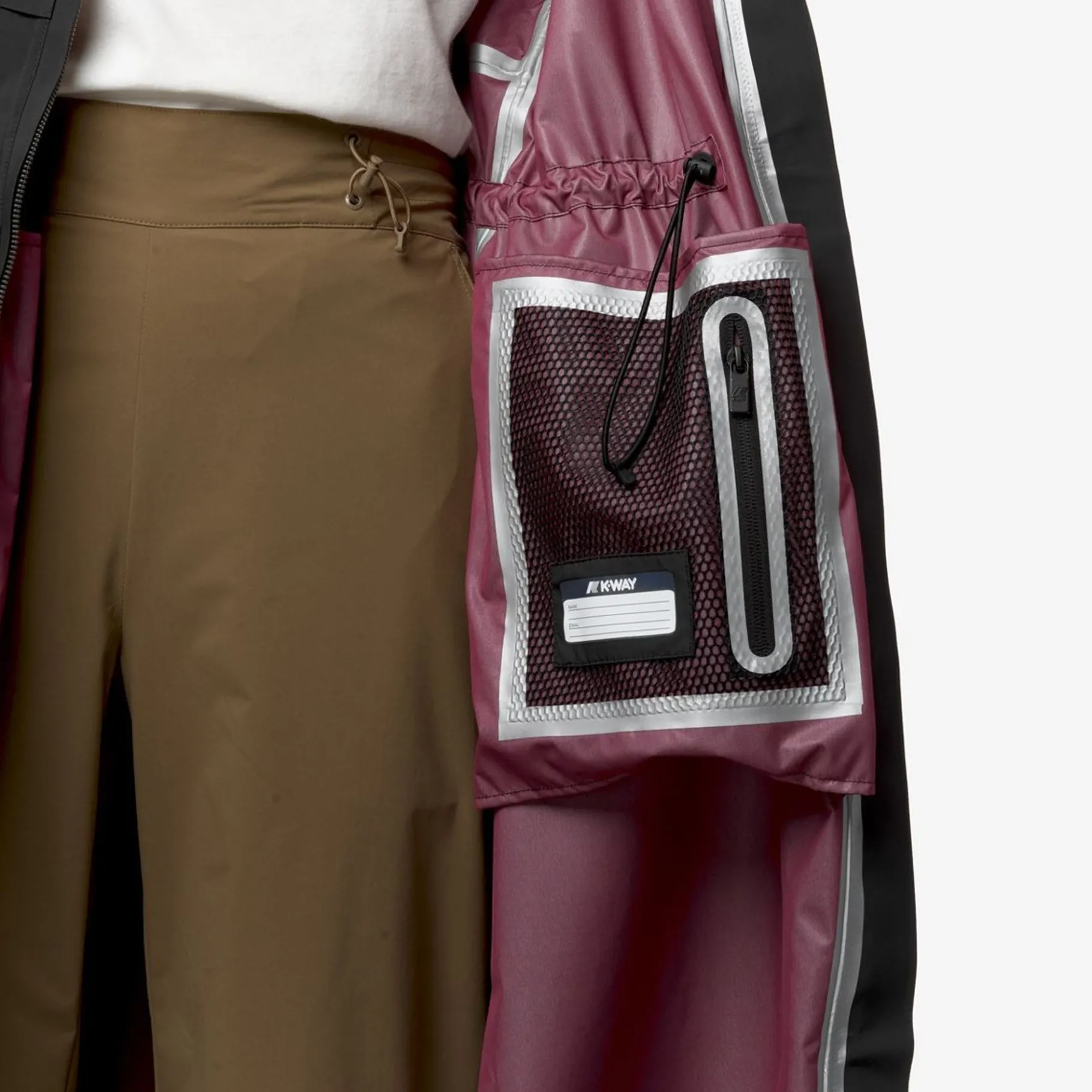Isoe Est Une Longue Veste Pour Femmes Au Style Épuré Et Fonctionnel-Chic. Cette Pièce D’Extérieur Se Compose D’Une Couche Extérieure En Tissu Technique Déperlant, D’Une Membrane Imperméable Et D’Une Couche Intérieure Plus Douce Pour Un Confort Supérieur Lorsqu’Elle Est Portée. Le Design À Fermeture Éclair Complète, Avec Une Capuche Enveloppante, Des Poignets Ajustables Avec Cordons De Serrage Et Deux Poches Latérales À Fermeture Éclair. Les Coutures Et Les Fermetures Éclair Ont Été Intégrées De Manière Subtile Pour Améliorer La Finesse Des Lignes, Tandis Que Les Ourlets Sont Collés Pour Un Effet De Coupe Brute. La Bande Emblématique K- Way À L’Arrière Ajoute Un Détail Graphique Distinctif.
